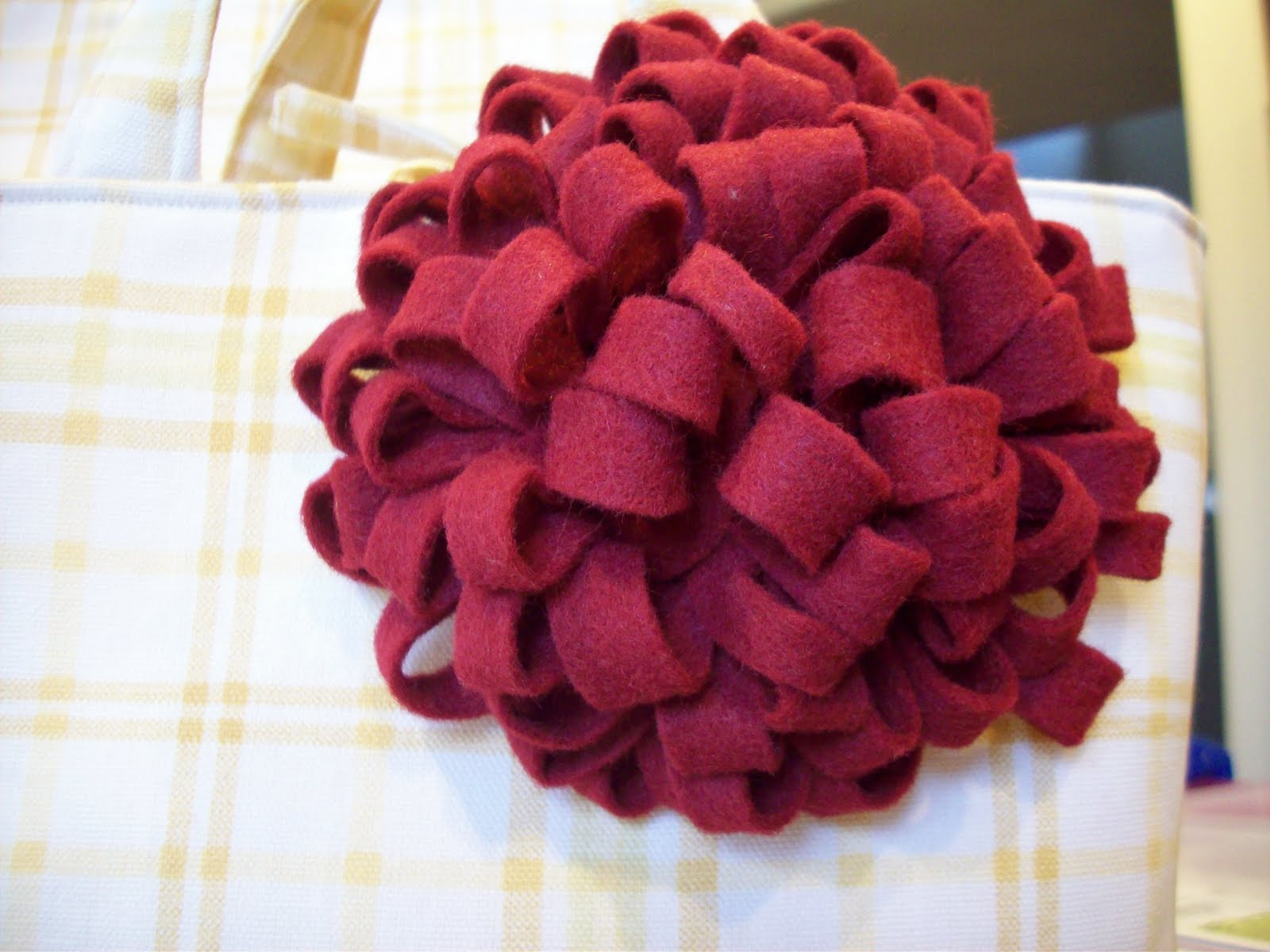 This is a close up of the flowers I used on these bags. I'll have a tutorial on how I made these up in the morning. Isn't that a gorgeous felt pom pom? Love it!