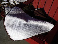 This is a close up of the snowballs. I used 6 layers of fabric cut in three different size circles, but I only cut through 5 layers to do the fake chenille- that way the background fabric wouldn't show through the rows of chenille.