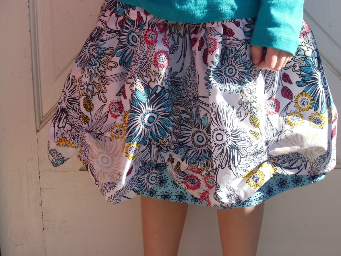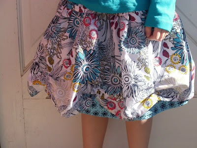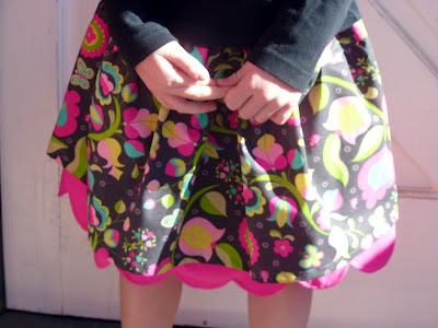I did, however, manage to get a couple of skirts made up for my niece.  My sister and I bought the fabric for these before Christmas and I just finally got up the oomph to get them made.  This one I made using my Scalloped Skirt tutorial.  I love that top fabric.  So springy! :)