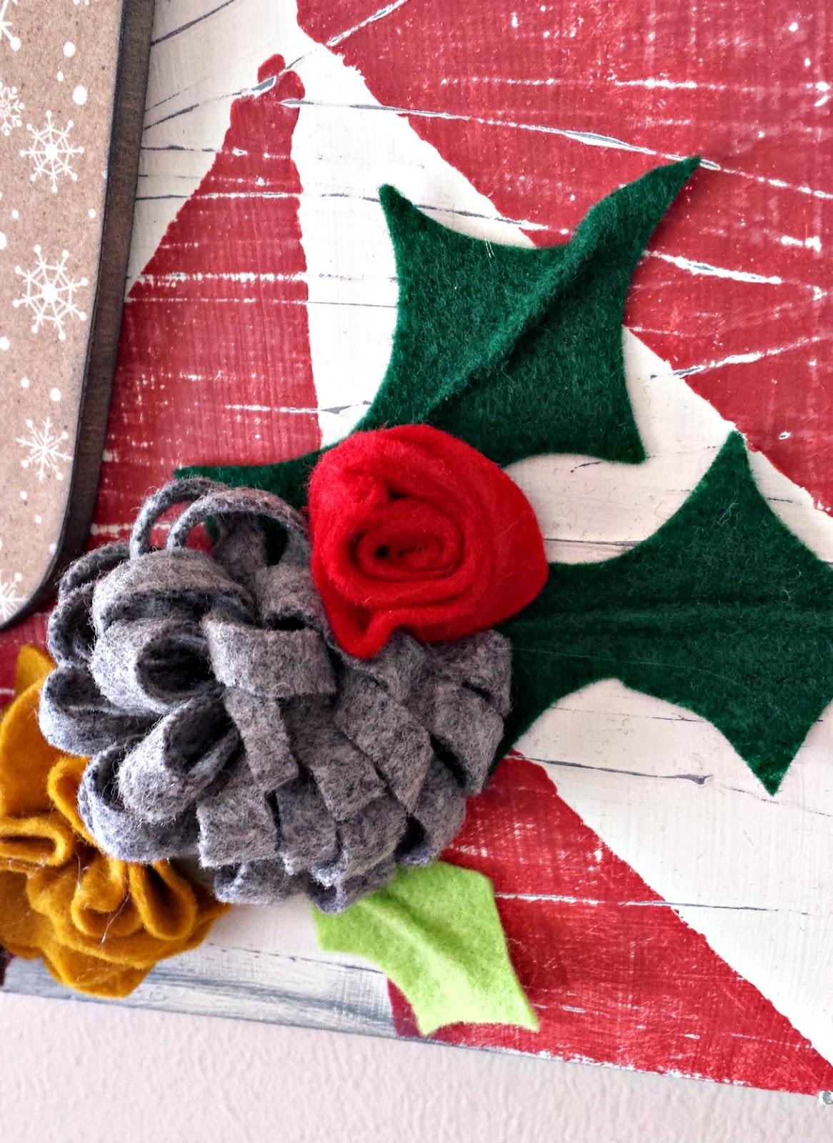 As I said in the beginning, I was loving the look of the Peabody and Sassafrass piece and the thing that really sent their piece over the top was the felt flowers on the bottom.  So I pulled out my bucket of felt and went to work.