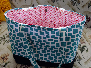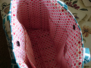 - Slide exterior of the bag INSIDE the lining of the bag. Line up side seams and raw edge, pin in place