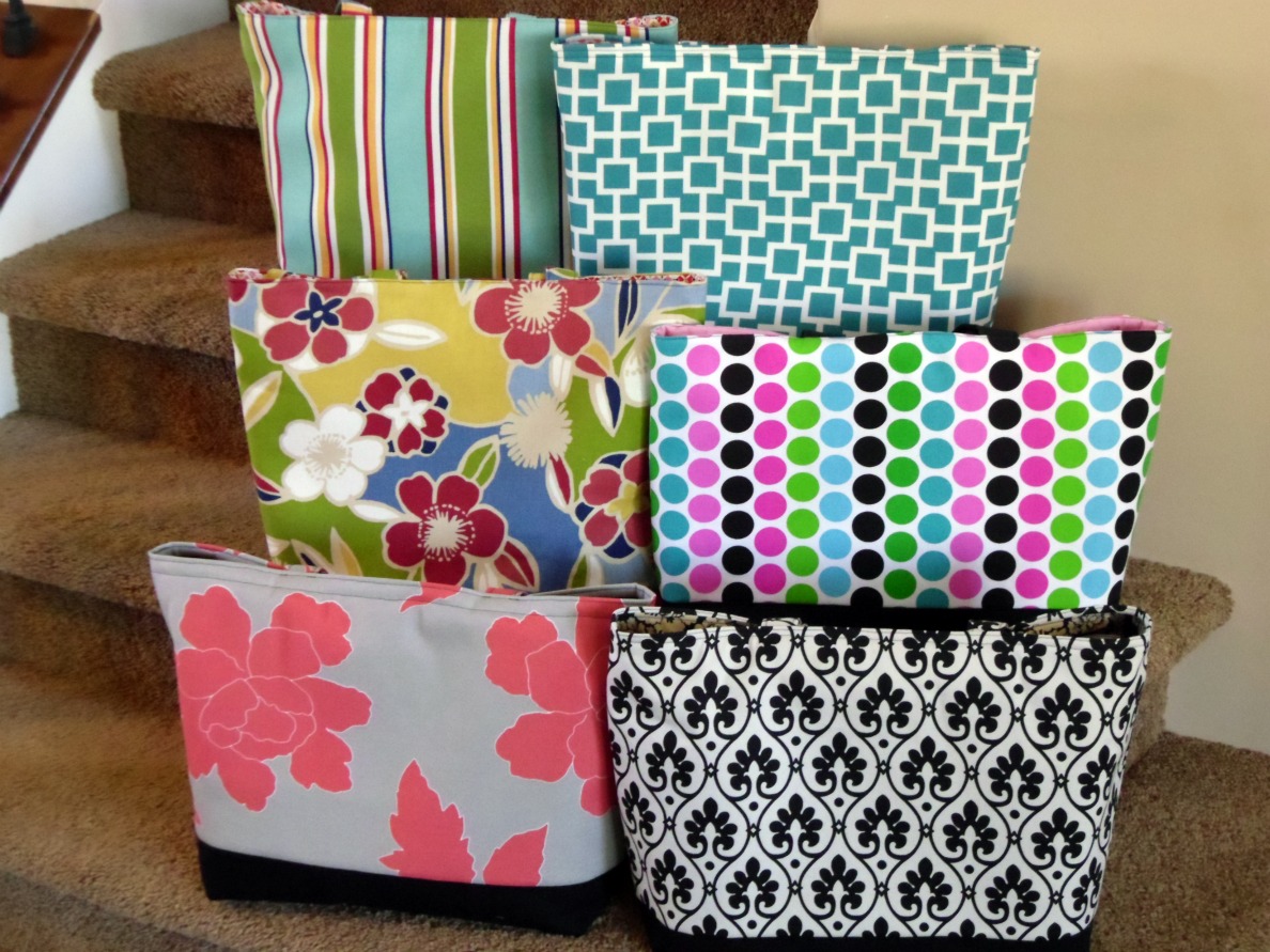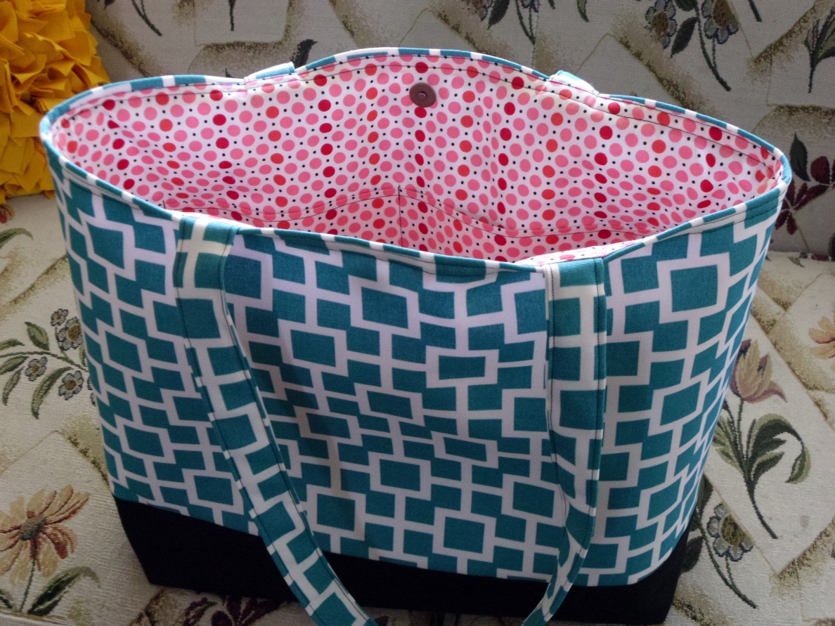 - Turn bag right side out through the opening in the bottom of the bag lining.