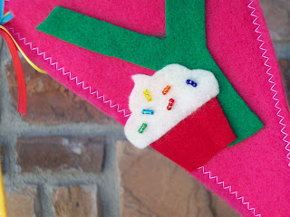 There are two versions, one with white letters and one with multicolored letters. I am thinking of making a new one with a bunch of hand embroidered embellishments and designs. Hooray for Felt!!!