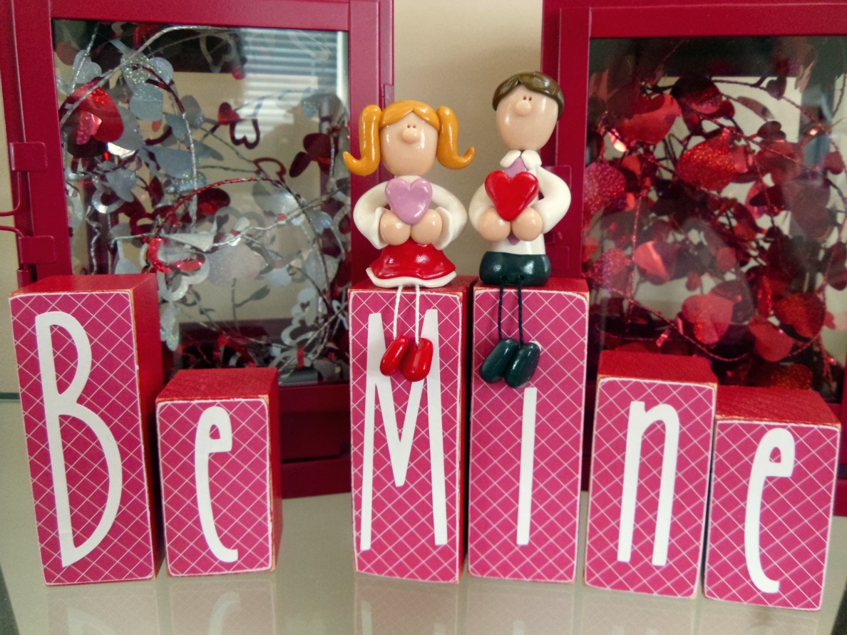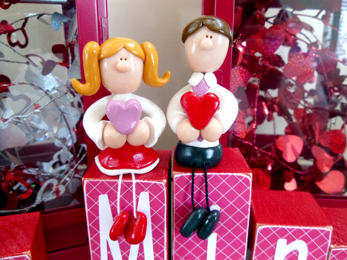 I just finished my newest block/figurine set. I have been wanting to do a Valentine's set for a while, but I wasn't really sure what figurines to make. I DO NOT like cupid- somehow the idea of making a man in a diaper just didn't appeal to me. ;) My sister suggested to just do a boy and girl and I think she was spot on. :)